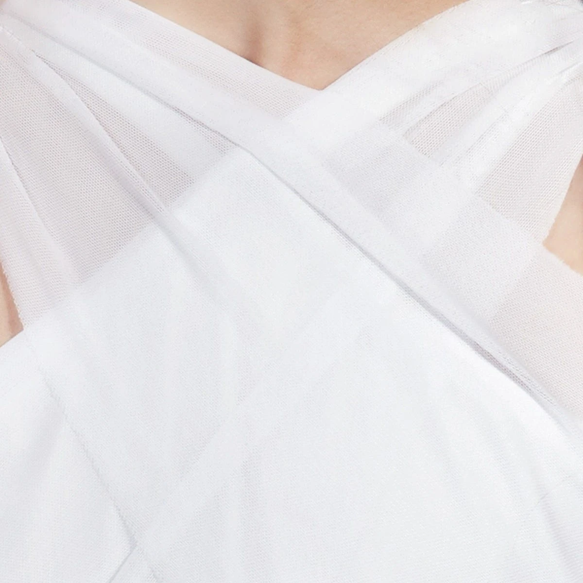 Lyrical dancers look heavenly in this angelic draped mesh dress.