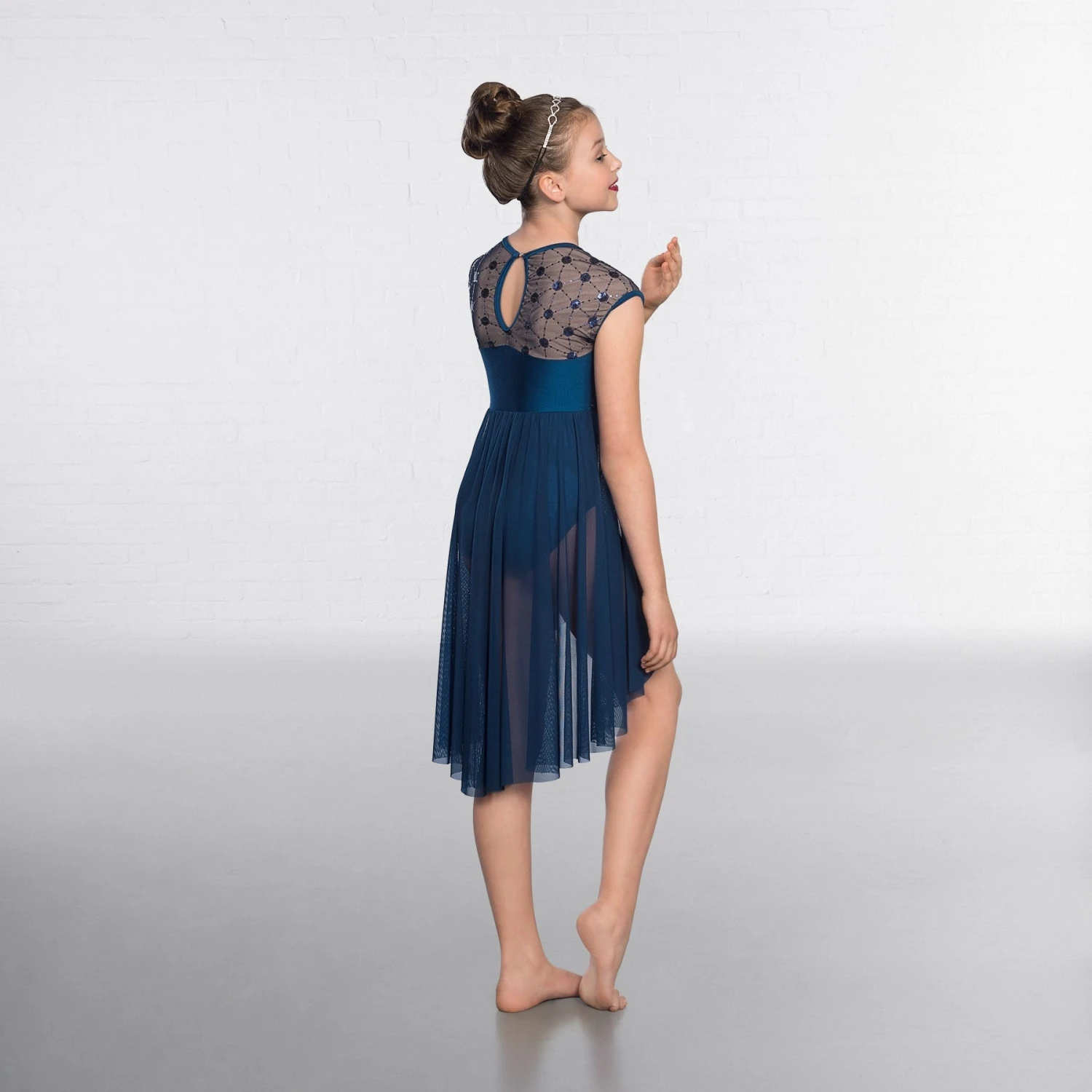 Put on a performance worthy of this stunning 1st Position geometric mesh lyrical dress. Perfect for contemporary and lyrical dance.