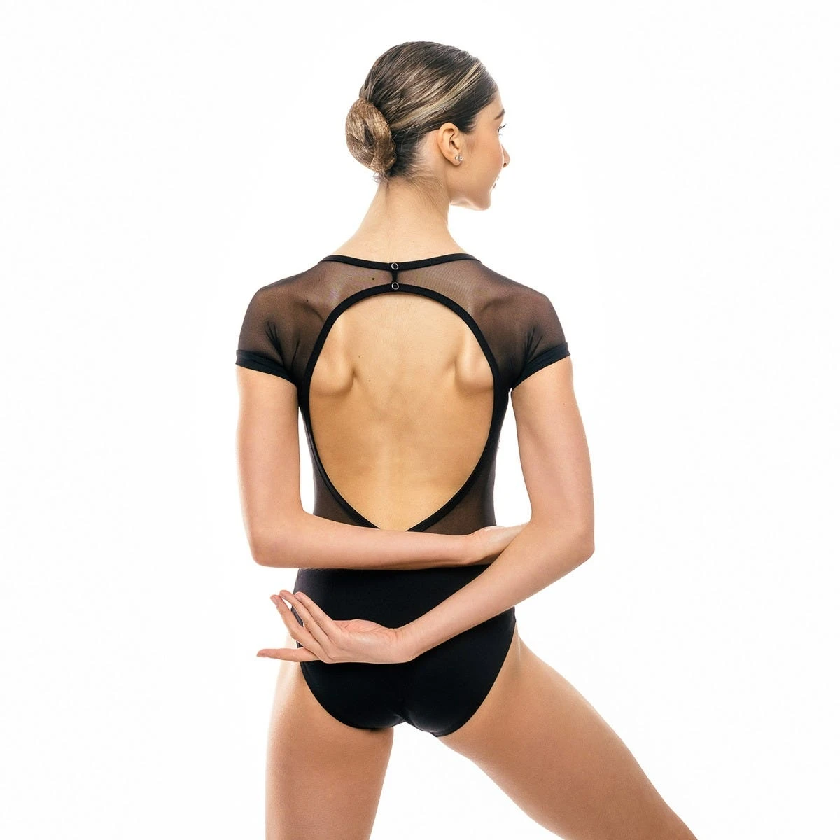 - Stylish mesh panels and elegant keyhole back set apart this modern leotard from Basilica
