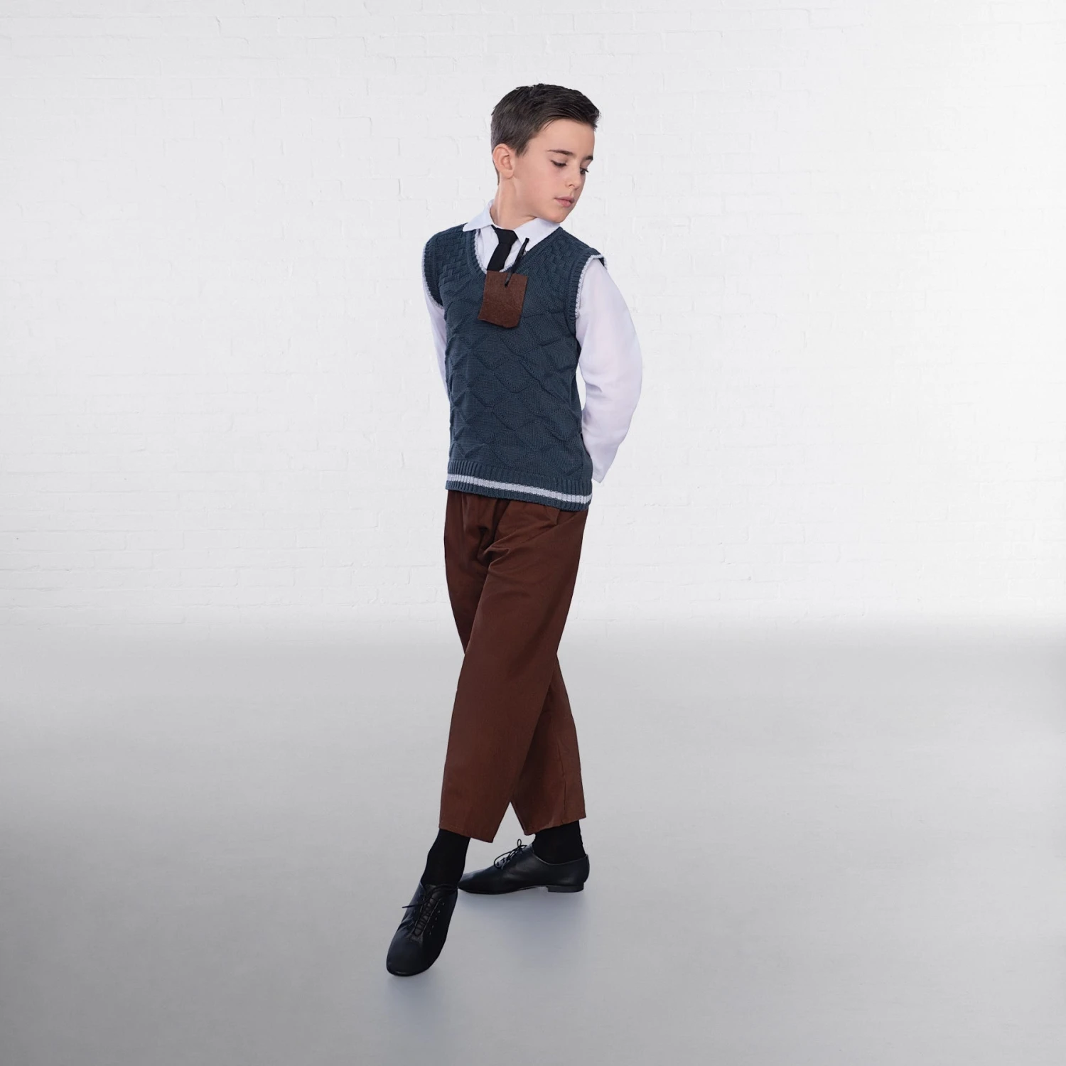* Includes shirt with tie, trousers and jumper with attached tag
