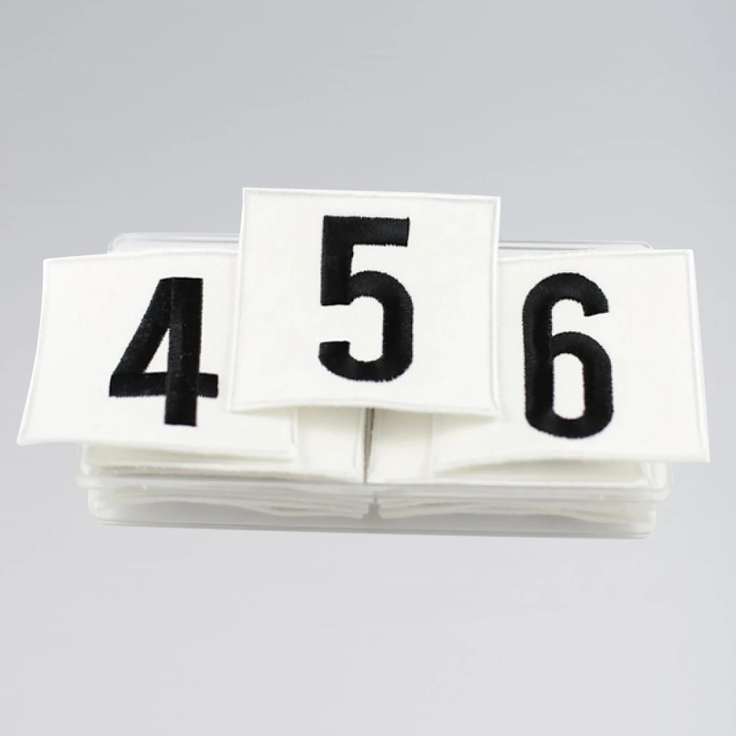 * Select from pack of numbers 1-4 or pack of numbers 1-8, with two of each number per pack – one number for the front and one for the back