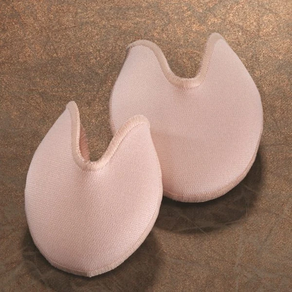 This crescent-shaped pad is made of a thin layer of gel material inside a fabric pouch. Great for wider feet and for those who want only the toes cushioned. Newly refined design offers more coverage in the bunion areas, a deeper cut vamp to better match the line of the pointe shoe, a sleeker shape that hugs the foot and keeps pads from sliding or bunching and an enhanced gel formulation that helps prevent bottoming out.